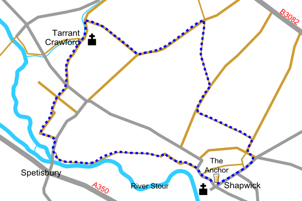 The Anchor @ Shapwick is sign posted off the B3082 between Blandford Forum and Wimborne Minster.