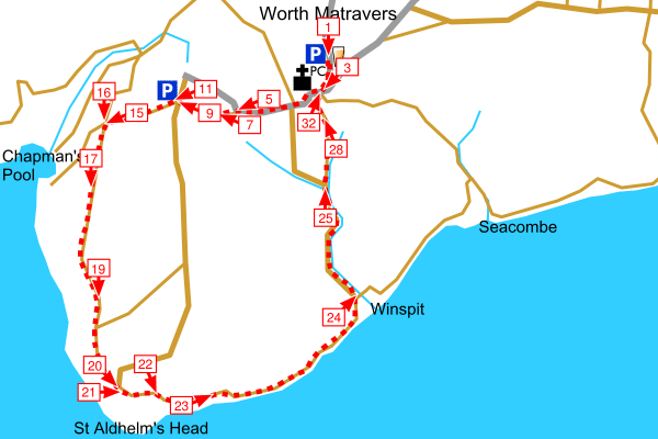 This circular walk from Worth Matravers follows the South West Coast Path from Chapman's Pool to Winspit via St Aldhelm's Head. There is a great deal to explore at St Aldhelm's Head and Winspit and the views along the coast path are splendid.