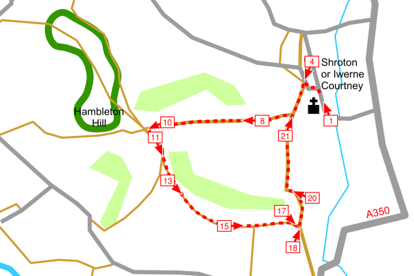This walk climbs Hambledon Hill from Shroton. It returns to Shroton via a different route. Extend the walk to 4.5 miles or 7.3 Km by walking around the ramparts of the Iron Age fort.
