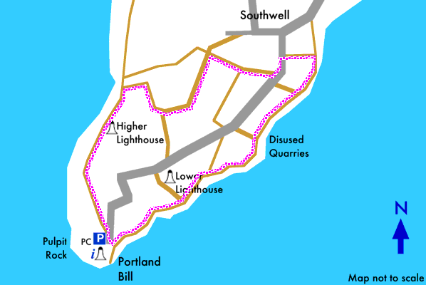 From Weymouth follow the signposts to Portland (along the A354) then follow signposts to Portland Bill. The walk starts from the Car Park close to the Lighthouse.