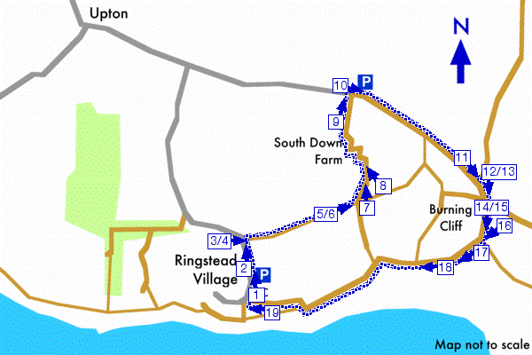 From Ringstead village this walk climbs to the alternative car park and viewpoint for spectacular coastal views. From the viewpoint the walk continues to Burning Cliff then along the South West Coast Path back to Ringstead village.